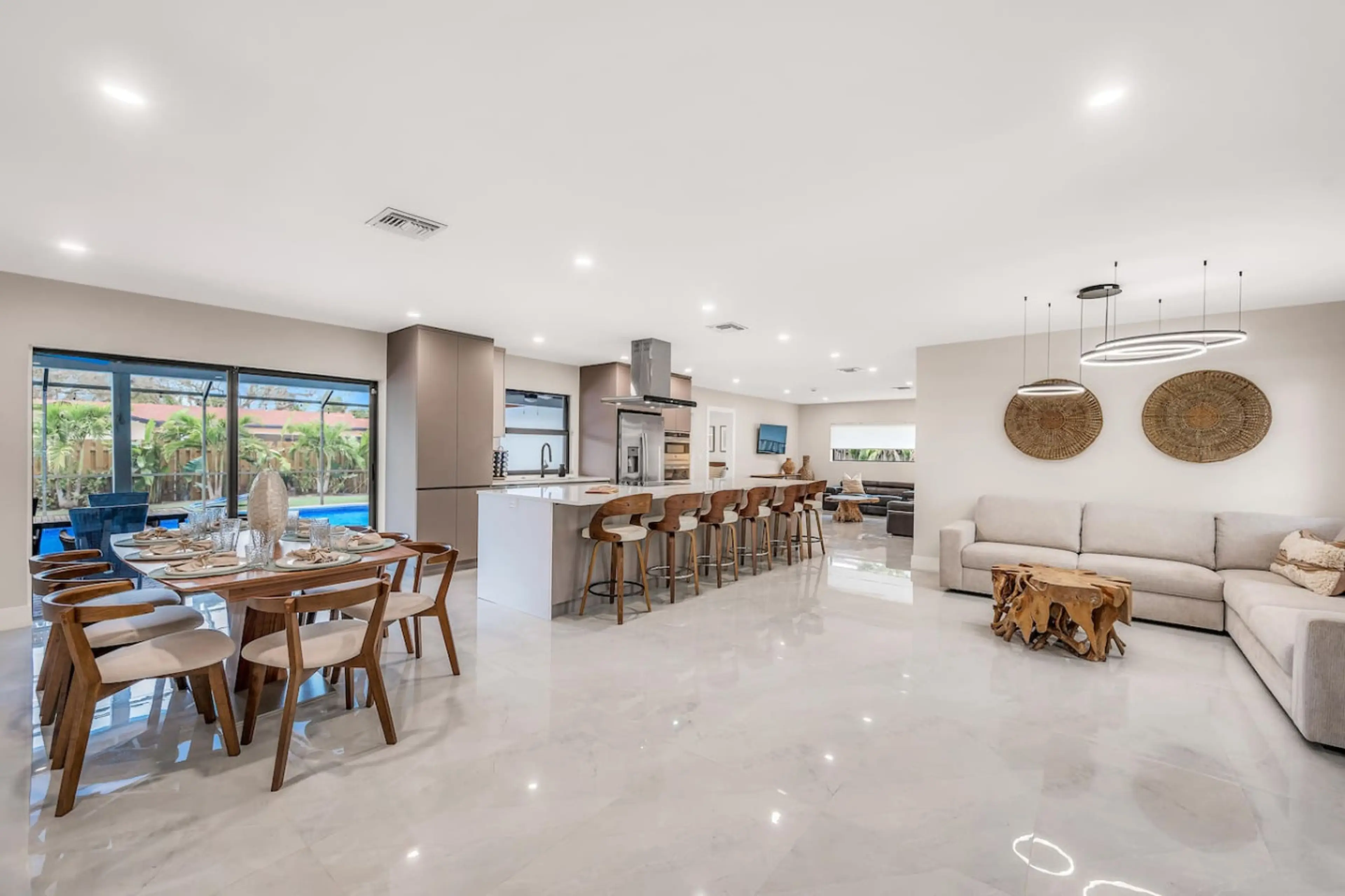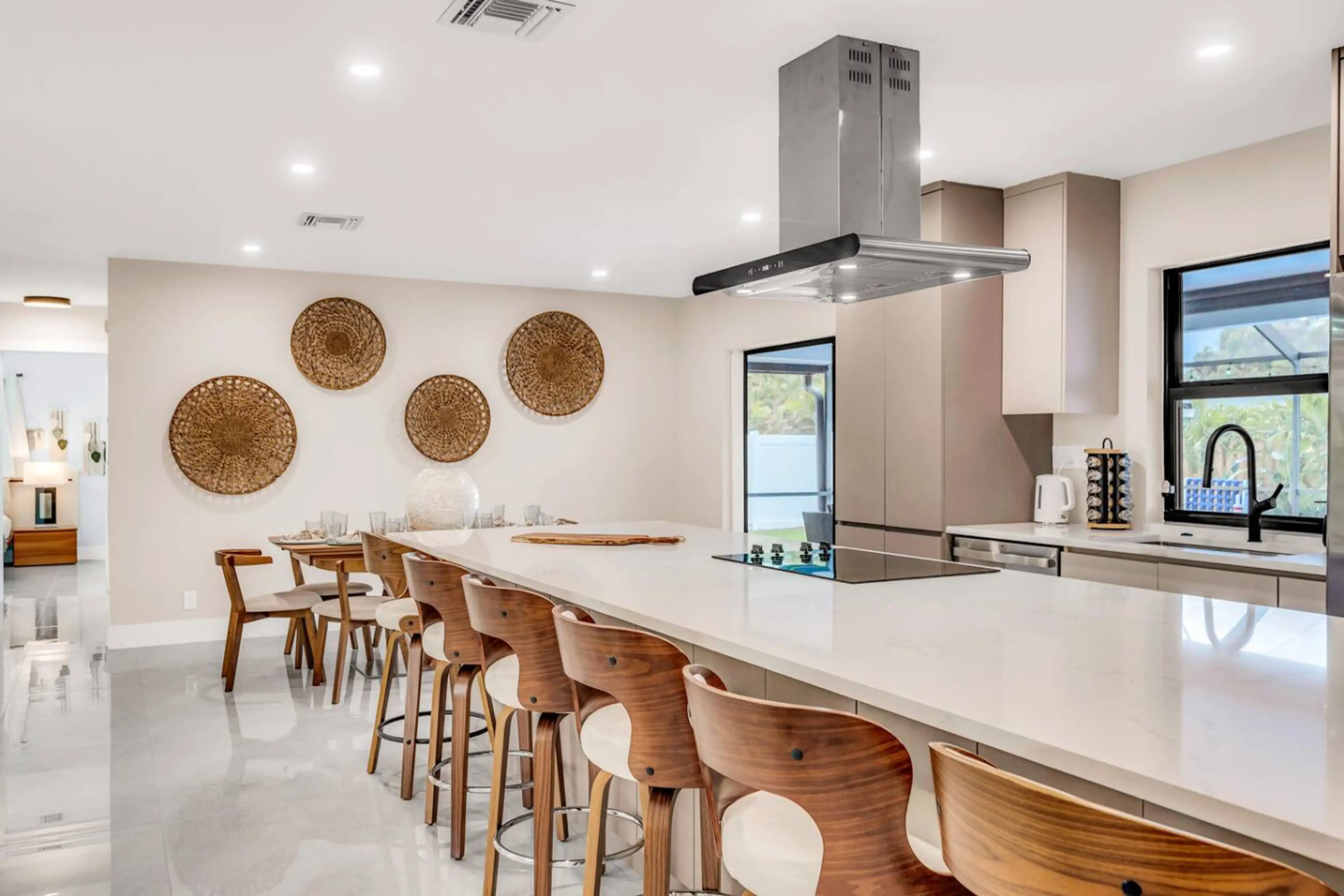 Modern and spacious Plantation pool home perfect for families and groups. Enjoy a bright open-concept layout with a large chef’s kitchen, oversized island, and comfortable living and dining areas. The screened-in backyard features a private pool, covered patio with a pool table, and a fun game lawn ...