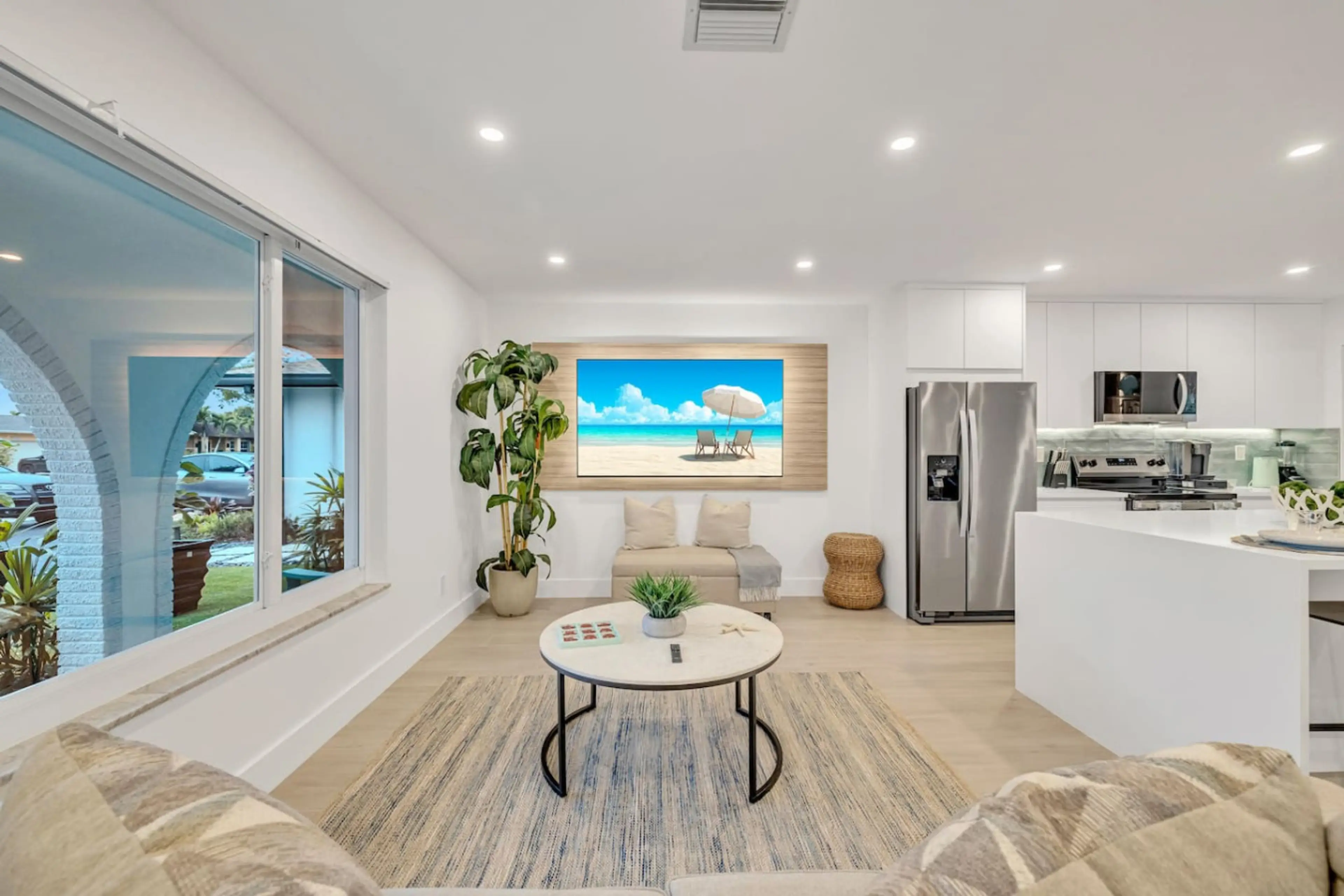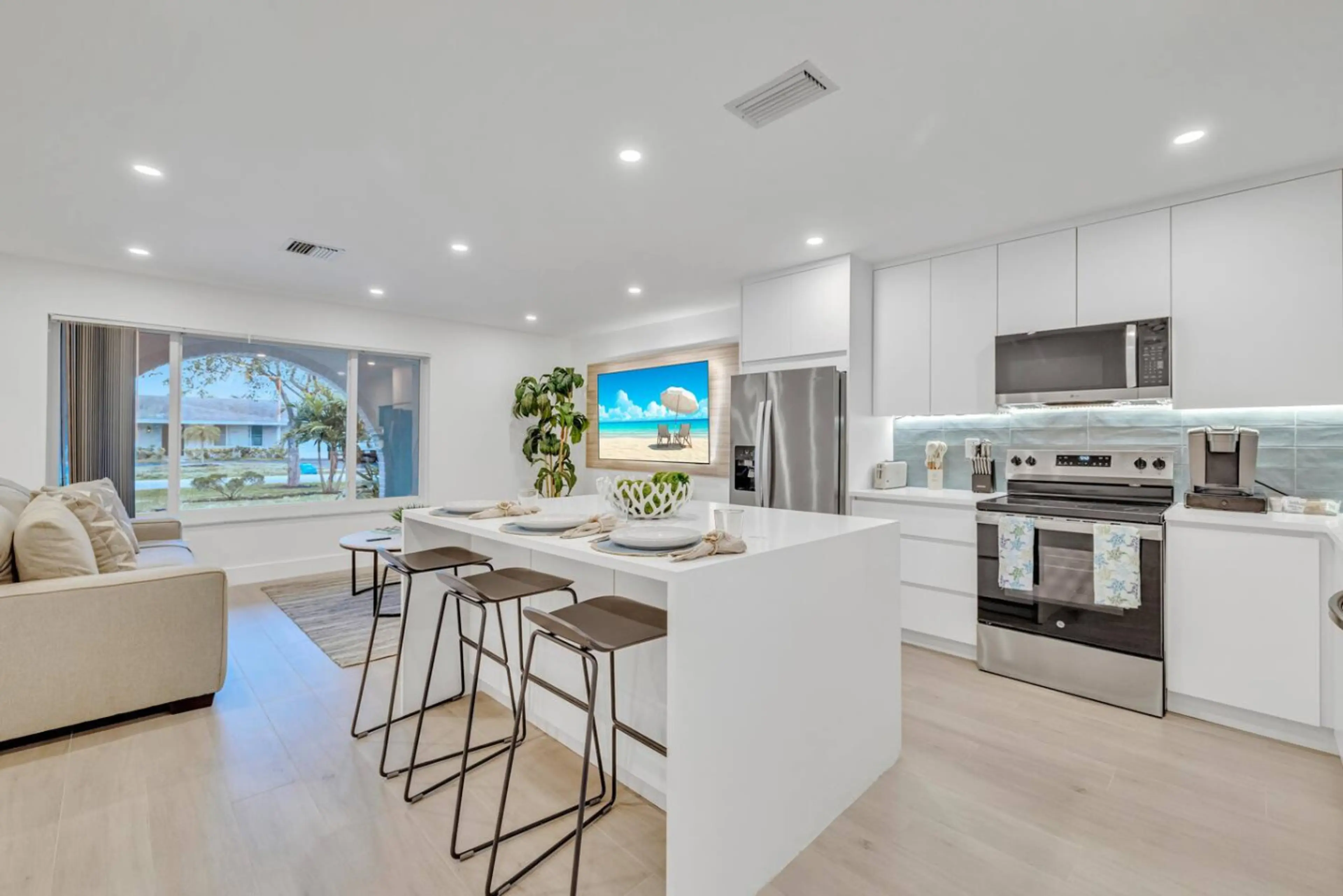 2 homes side by side. Ideal for a group of 16, immaculately clean & modern, featuring 6 bedrooms, 4 baths. Just 15 minutes to FLL airport. Enjoy a heated pool, 3 fire pits, hammock, artificial turf, night lighting, cornhole, connect 4, life size chess and checkers, Horseshoe, Golf, pool floats, and...